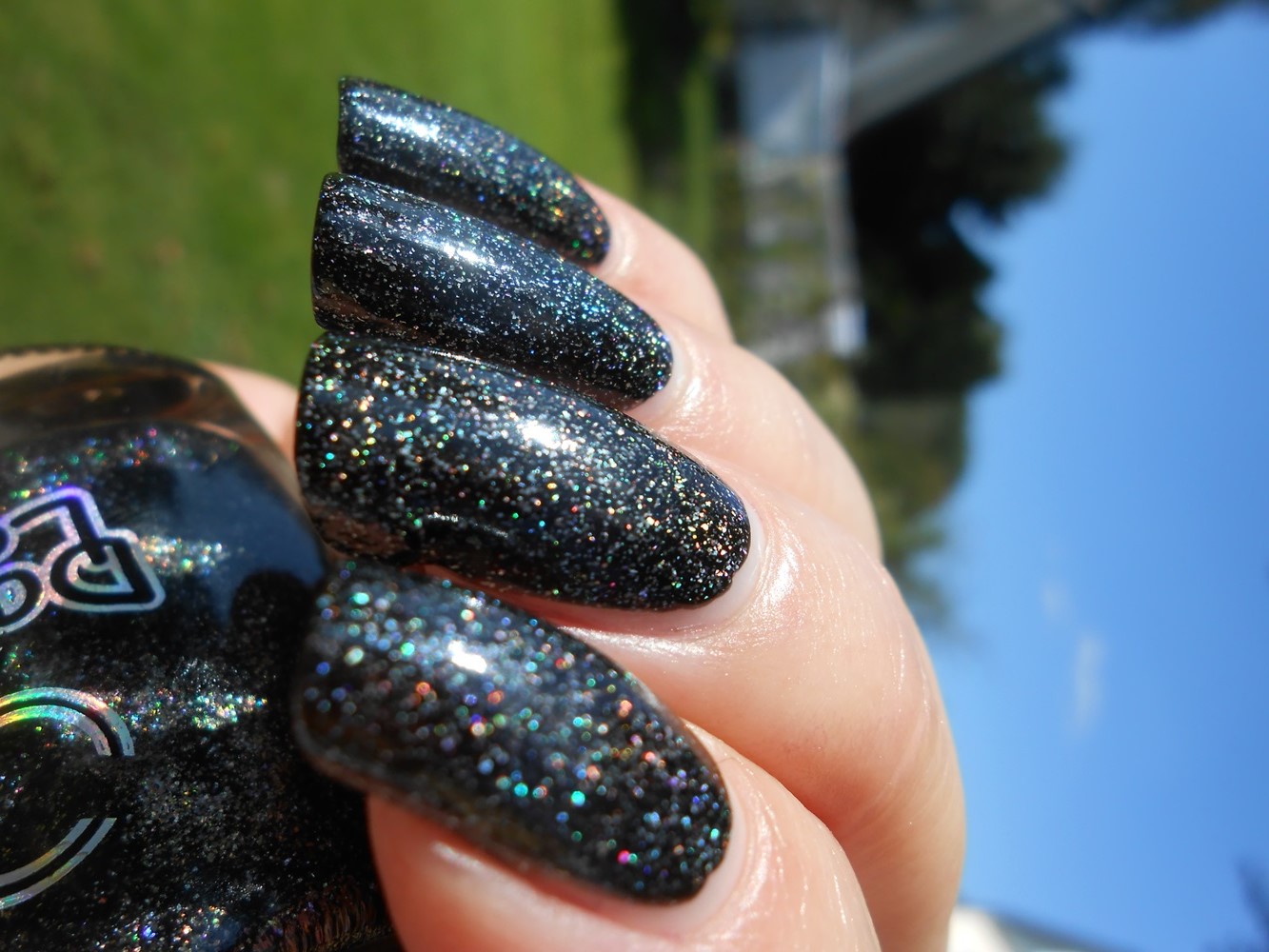 Du weißt doch - ich und schwarz und glitzrig ;o). Allerdings ist derzeit nicht wirklich Saison für Holos. Ich bereue es schon fast, gestern den 'Schlüpperlack' von Llarowe lackiert zu haben.